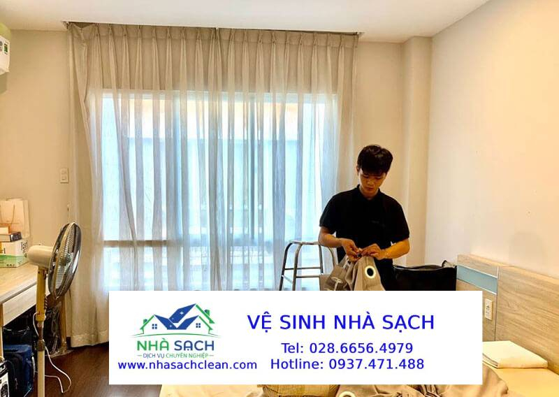 Sau khi giặt xong, rèm được là hơi định hình lại nếp gấp bằng bàn là hơi công nghiệp 200°C, phun chống bám bụi, chống tia UV và chống tĩnh điện, giúp rèm giữ màu đẹp như mới từ 24–48 tháng.